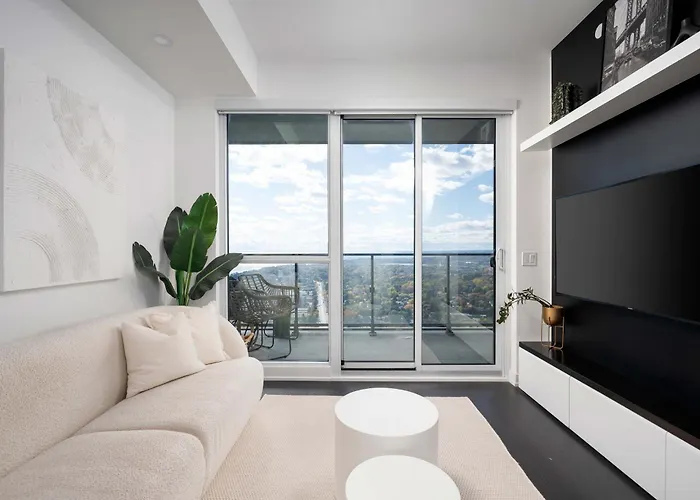 Elegant Sunset Lake View Suite With Parking Toronto is approximately a 10-minute walk from the waterfront Humber Bay Park. This apartment is situated about 10 km from Toronto Union train station and just moments from Legion Road bus station.